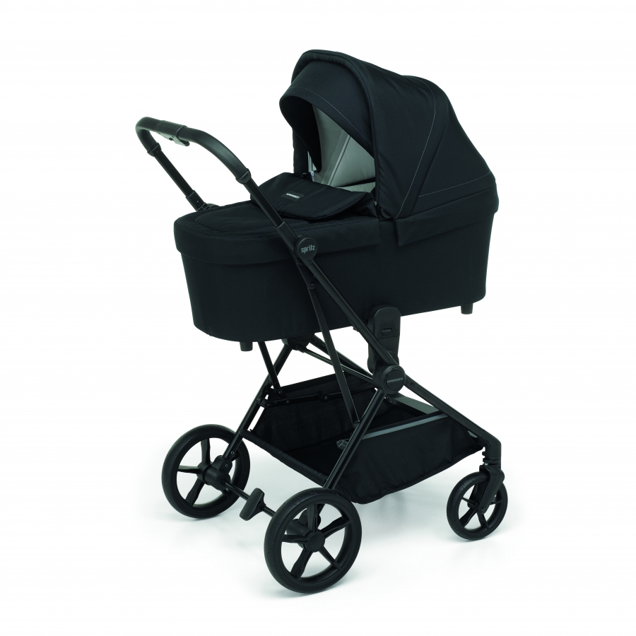 Il sistema combinato Spritz di Foppapedretti è un trio leggero, compatto e molto comodo, ideale per accompagnare la crescita del neonato dalla nascita fino a 22 kg e garantire il massimo comfort a bambino e genitori. Sul leggero telaio in alluminio si possono montare la navicella pieghevole salvaspazio per neonato, la seduta passeggino chiudibile fronte mamma e fronte strada, il seggiolino auto i-Size per bambini da 40 a 85 cm di altezza (peso massimo 13 kg).
